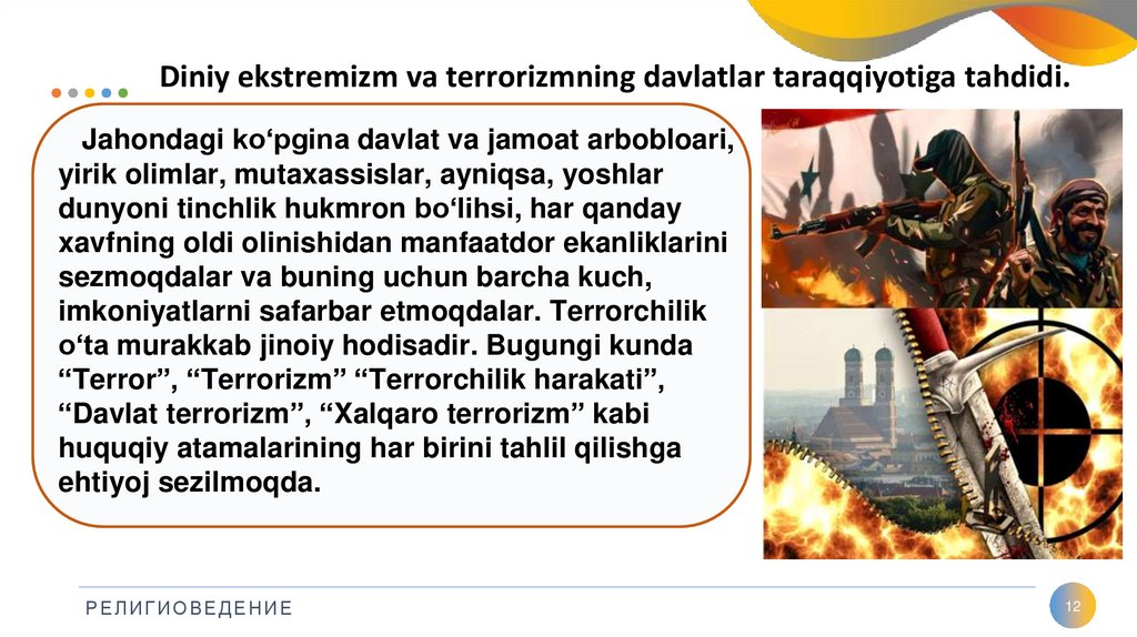 2. Diniy ekstrеmizm va tеrrоrizmning davlatlar taraqqiyotiga, millatlararо