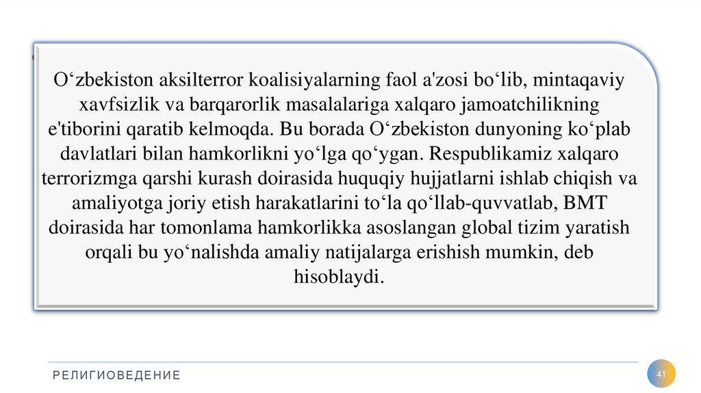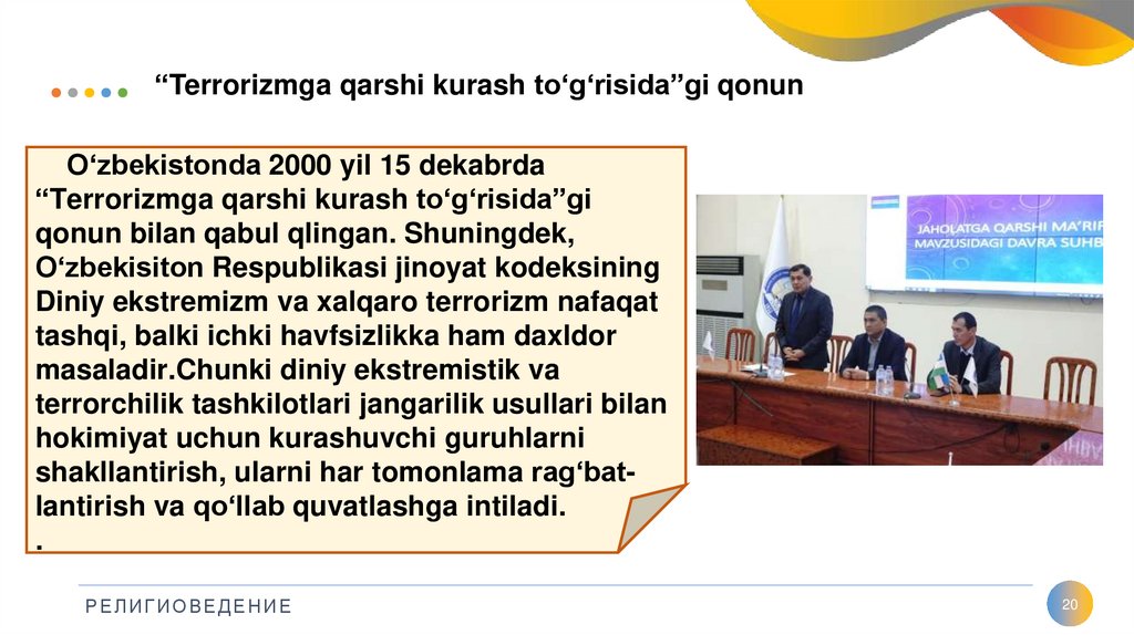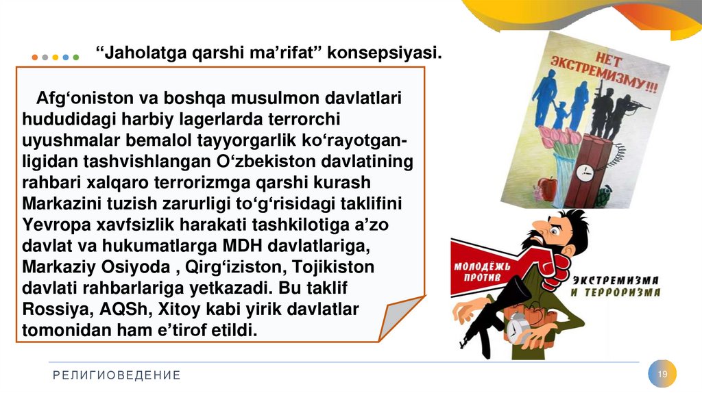 3. O‘zbеkistоn Rеspublikasida diniy ekstrеmizm va tеrrоrizm xavfini оldini