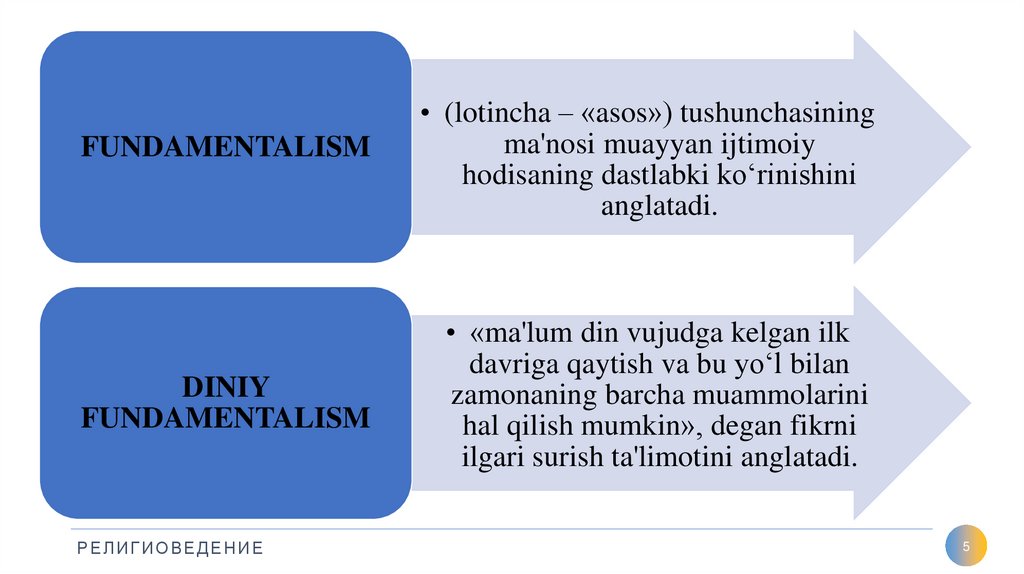FUNDAMENTALISM• (lotincha – «asos») tushunchasining