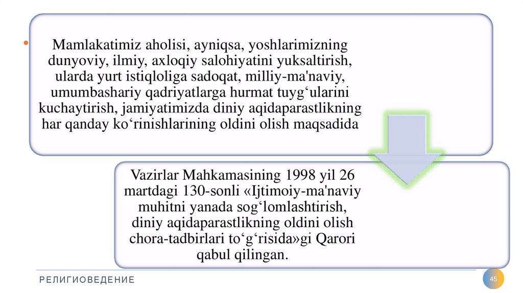 kuchaytirish, jamiyatimizda diniy aqidaparastlikning