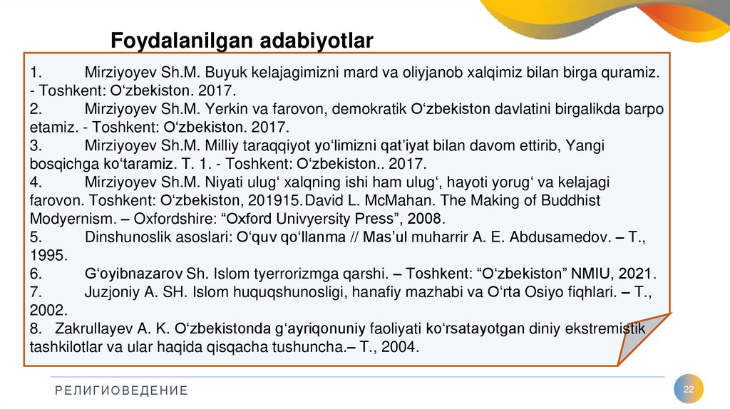 8. Zakrullayev A. K. O‘zbekistonda g‘ayriqonuniy faoliyati ko‘rsatayotgan diniy ekstremistik