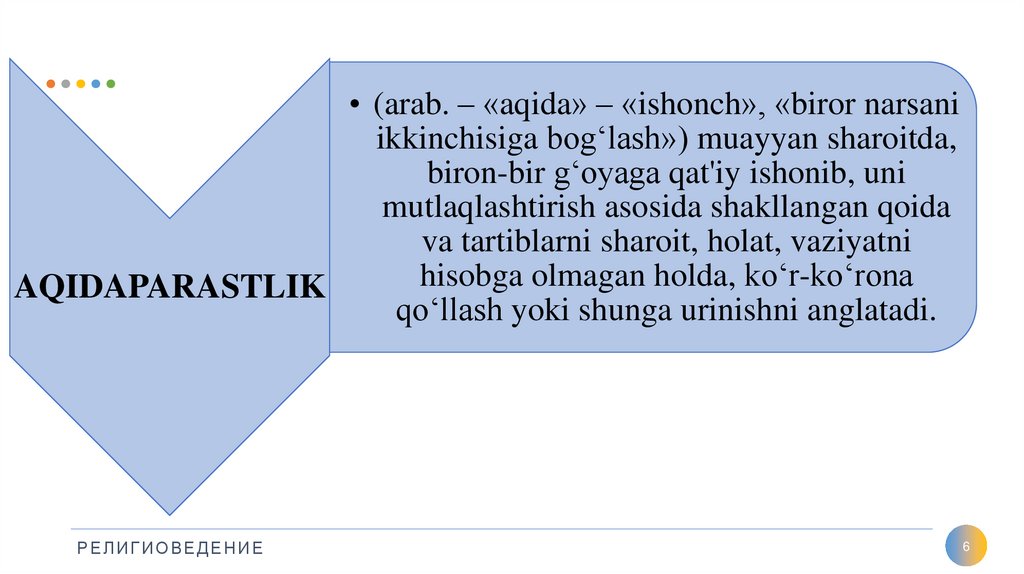 Ko‘p manbalarda «aqidaparastlik» so‘zi hozirgi