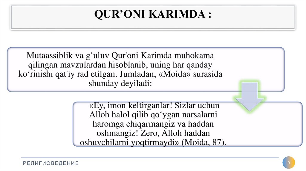 QUR’ONI KARIMDA :Mutaassiblik va g‘uluv Qur'oni Karimda muhokama