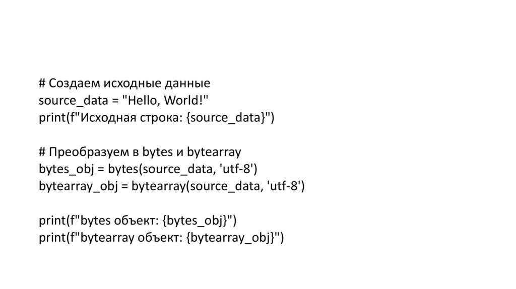# Создаем исходные данныеsource_data = "Hello, World!"