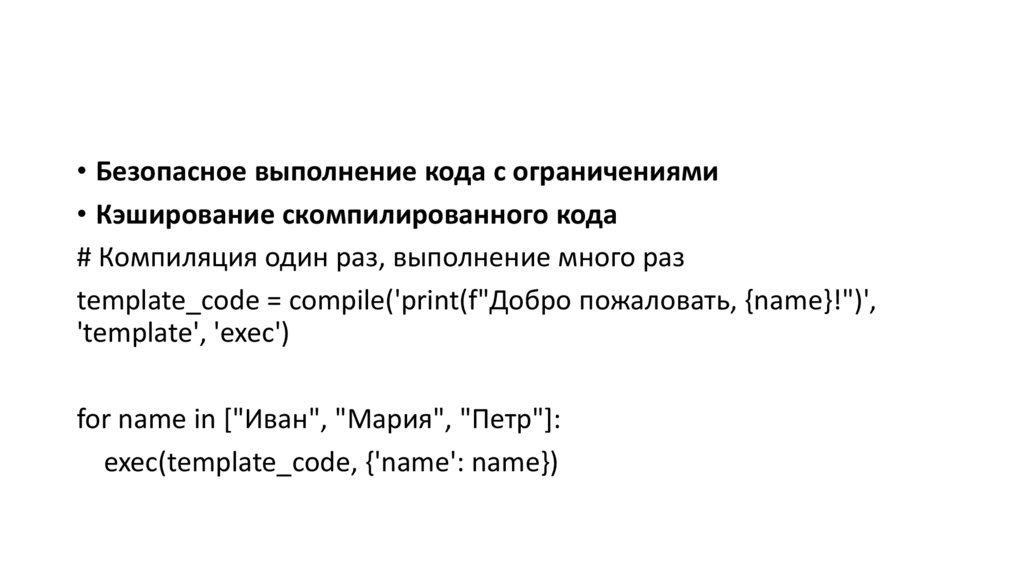 • Округляет число до заданного количества знаков после запятой.print(round(3.14159, 2)) # 3.14