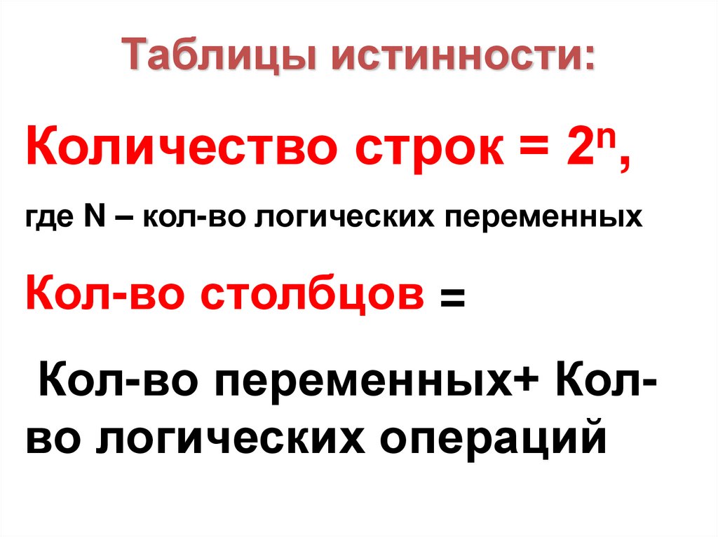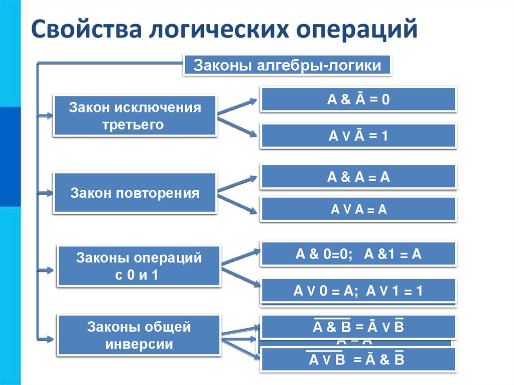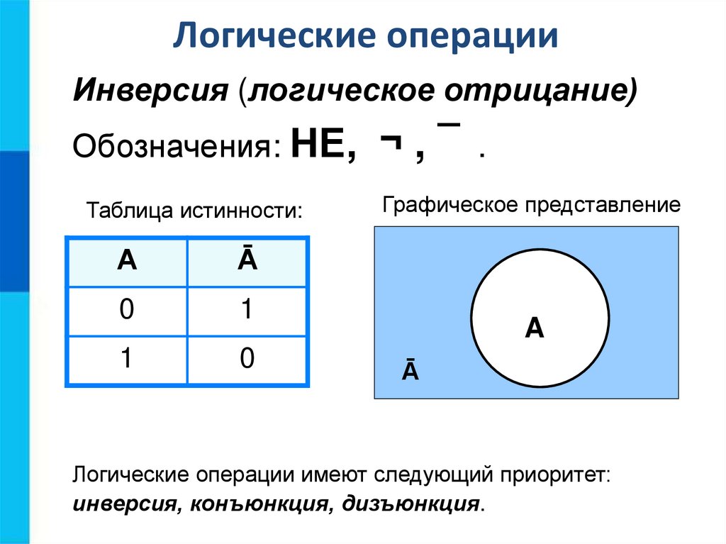 Приоритет операций: ¬ инверсия (отрицание), действия в скобках