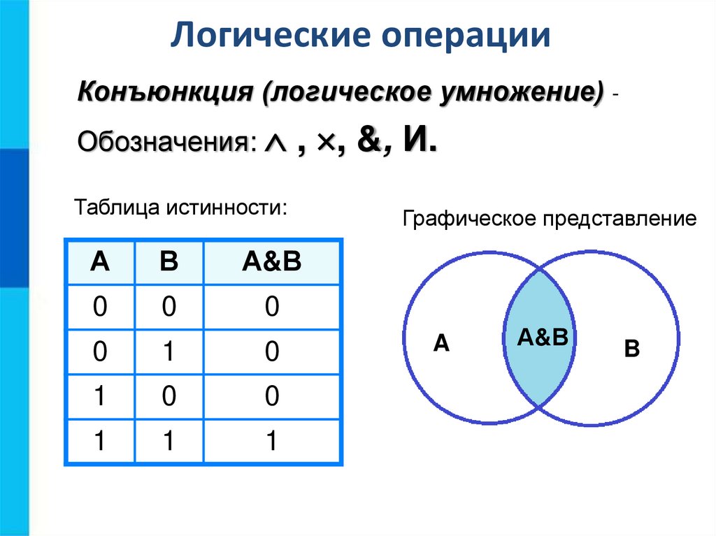 Логические операцииКонъюнкция (логическое умножение) Обозначения: , , &, И.