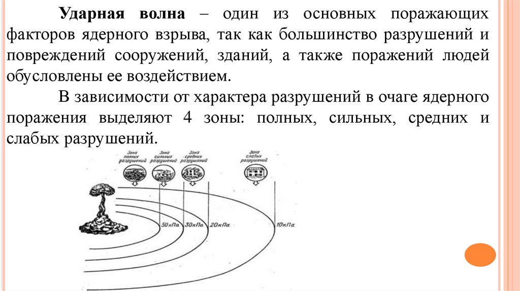 Ударная волна – один из основных поражающихфакторов ядерного взрыва, так как большинство разрушений и