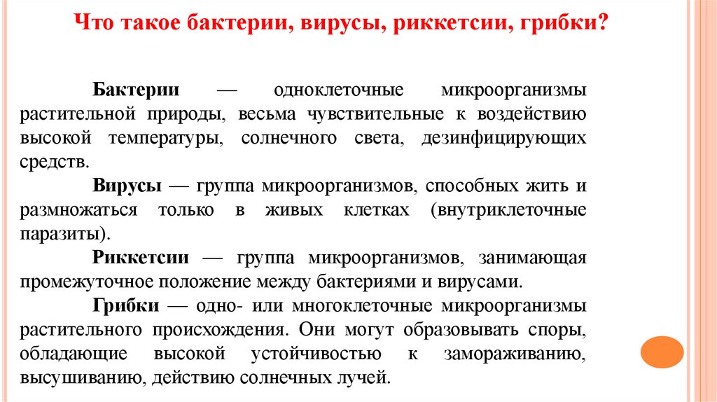 Что такое бактерии, вирусы, риккетсии, грибки?Бактерии