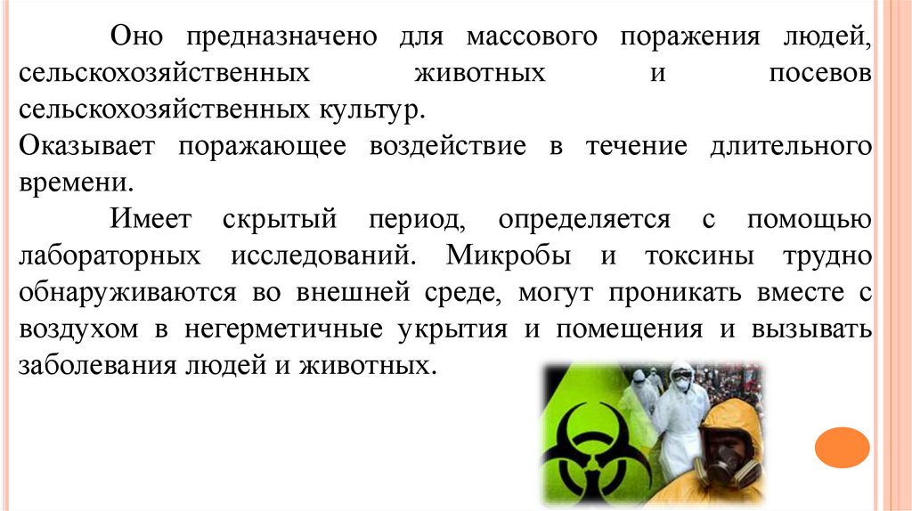 Оно предназначено для массового поражения людей,сельскохозяйственных