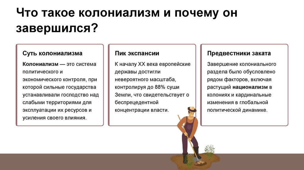 Как колониализм продолжает влиять на современный мир (экономически, политически, культурно)? Приведите
