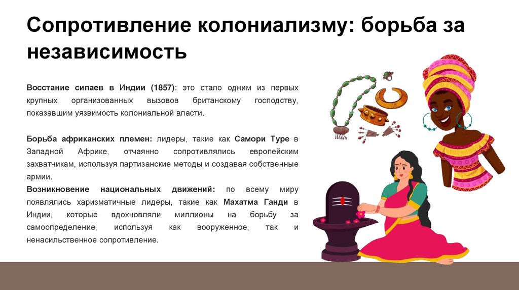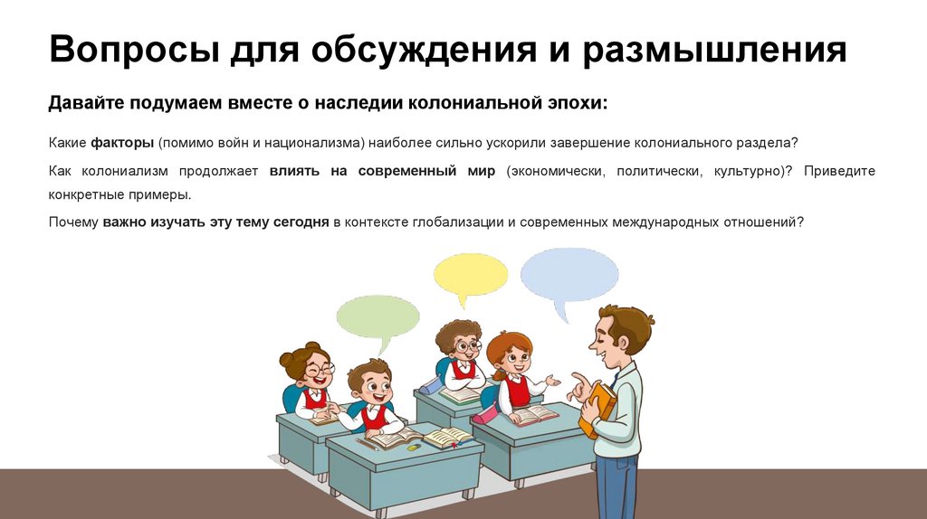 Вопросы для обсуждения и размышленияДавайте подумаем вместе о наследии колониальной эпохи:
