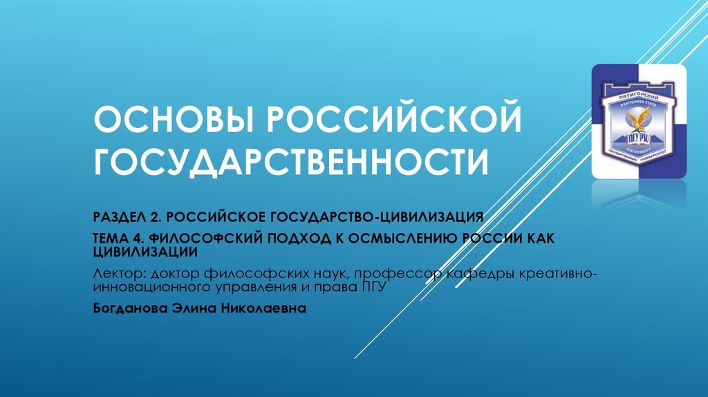 РАЗДЕЛ 2. РОССИЙСКОЕ ГОСУДАРСТВО-ЦИВИЛИЗАЦИЯТЕМА 4. ФИЛОСОФСКИЙ ПОДХОД К ОСМЫСЛЕНИЮ РОССИИ КАК