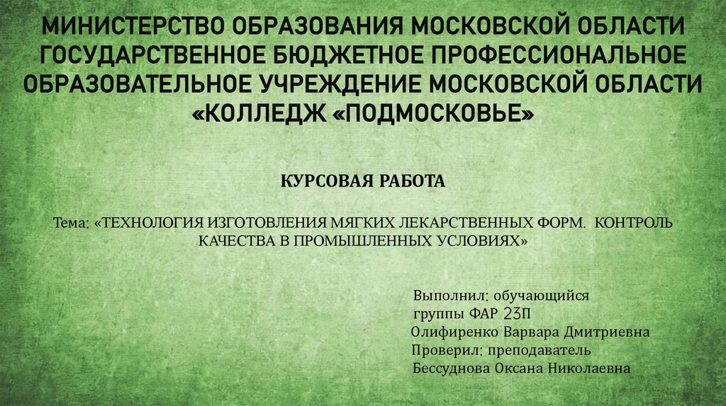 Тема: «ТЕХНОЛОГИЯ ИЗГОТОВЛЕНИЯ МЯГКИХ ЛЕКАРСТВЕННЫХ ФОРМ. КОНТРОЛЬ