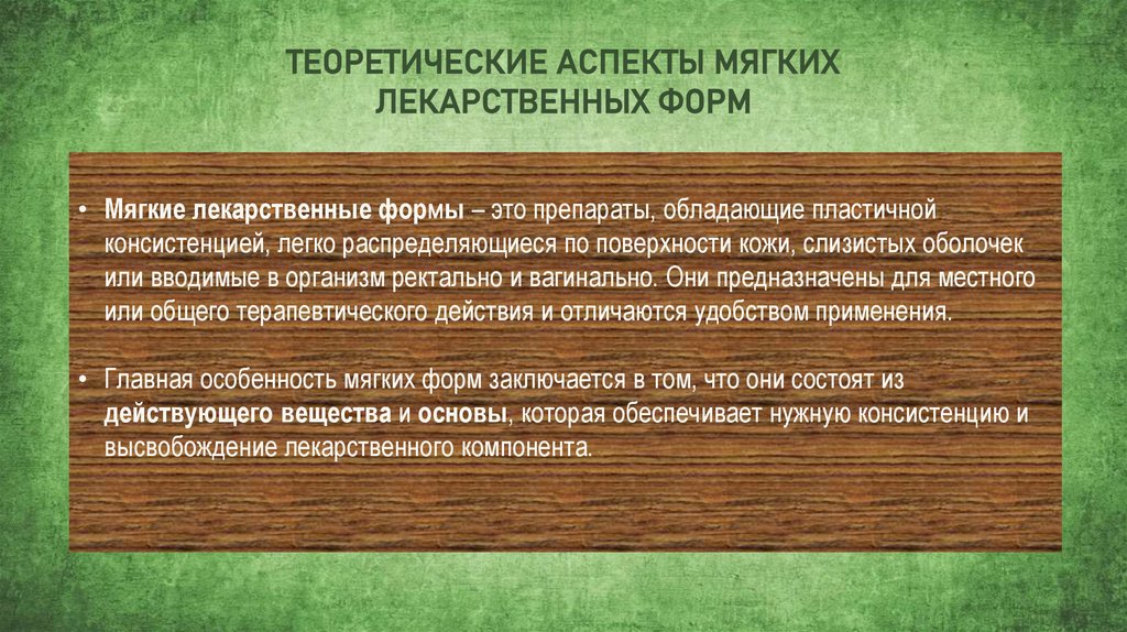 ТЕОРЕТИЧЕСКИЕ АСПЕКТЫ МЯГКИХЛЕКАРСТВЕННЫХ ФОРМ