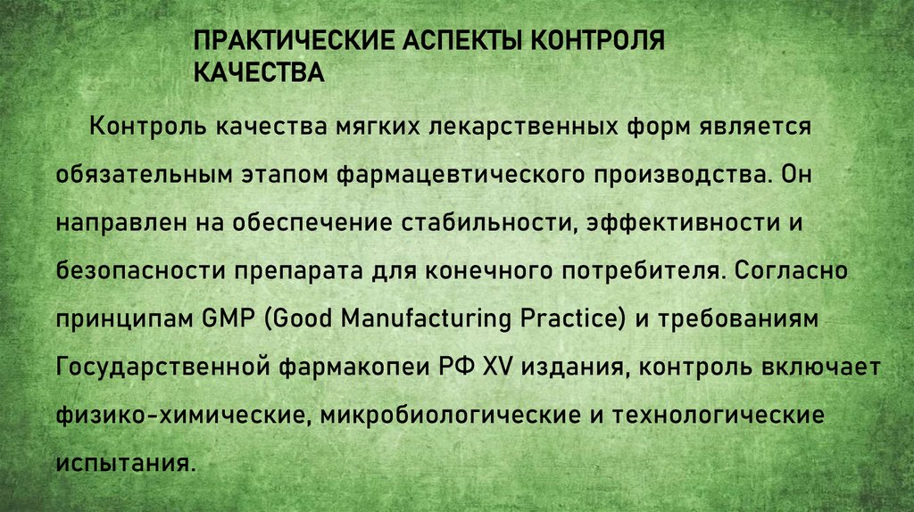 Контроль качества мягких лекарственных форм является