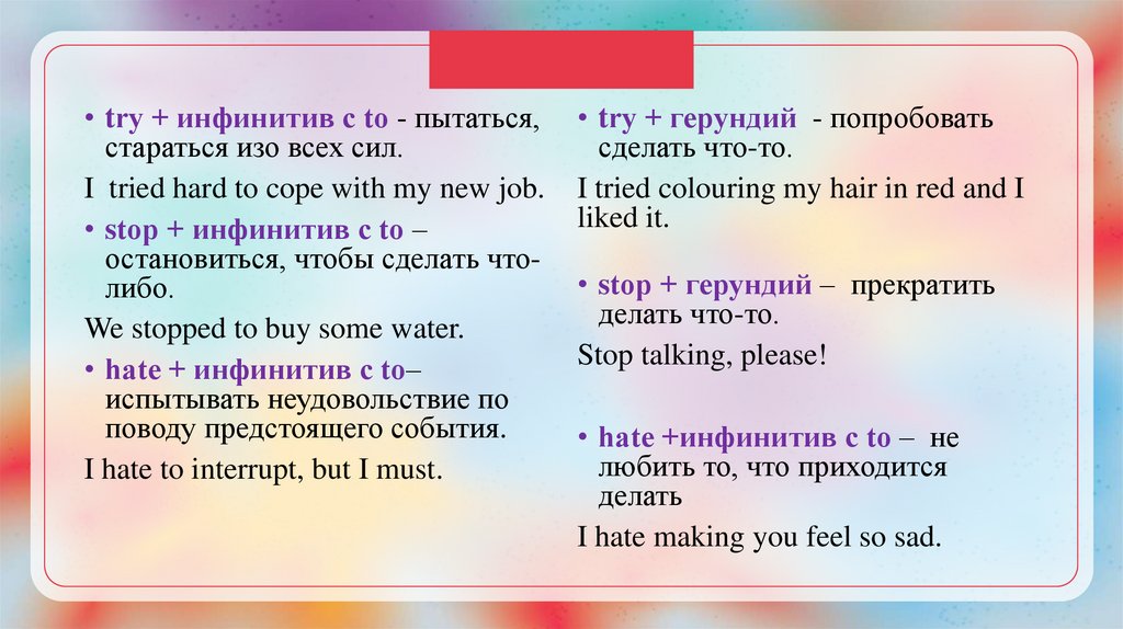 • try + инфинитив с to - пытаться,стараться изо всех сил.