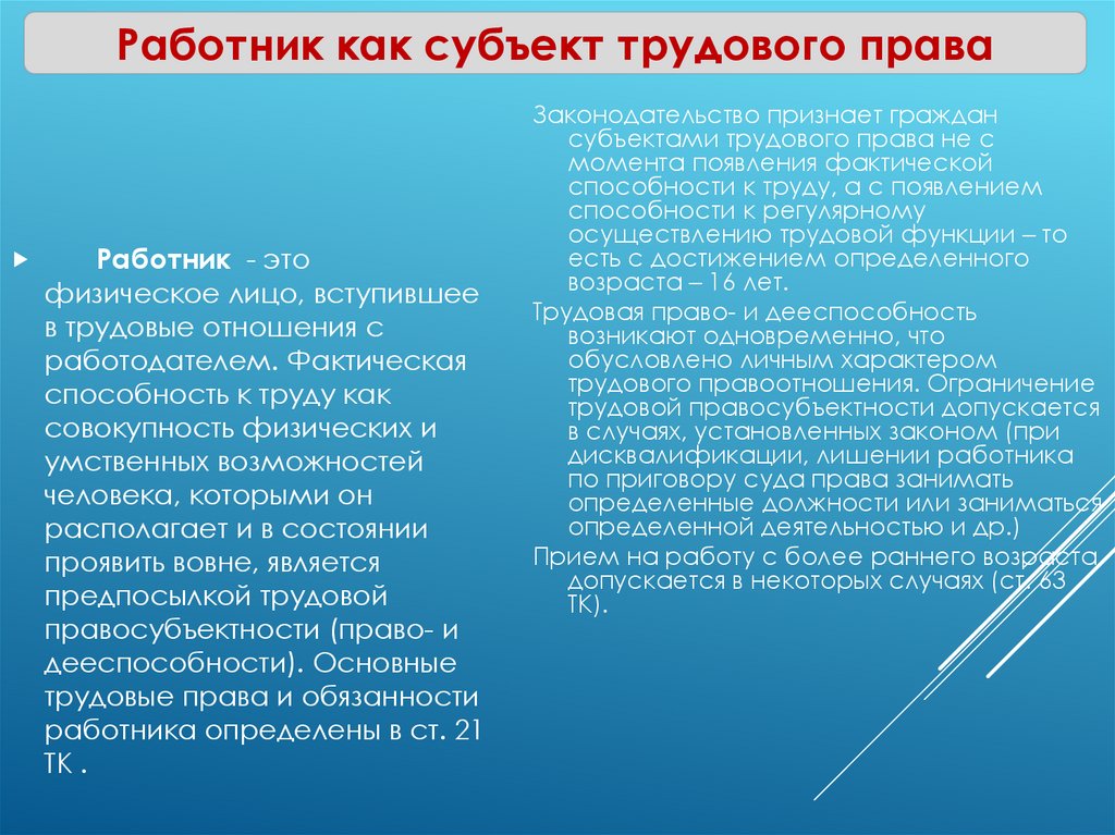 Предмет трудового праваТрудовые
