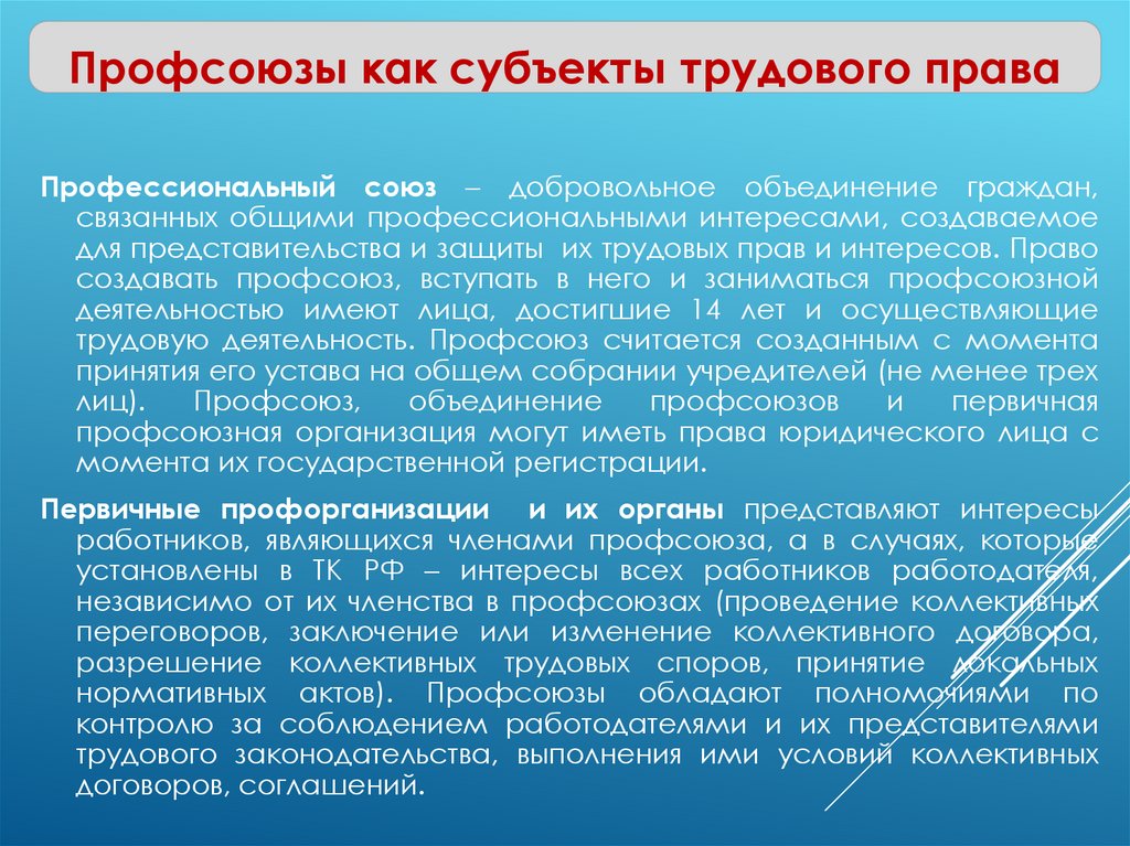 трудового права, стороны трудовых отношений и