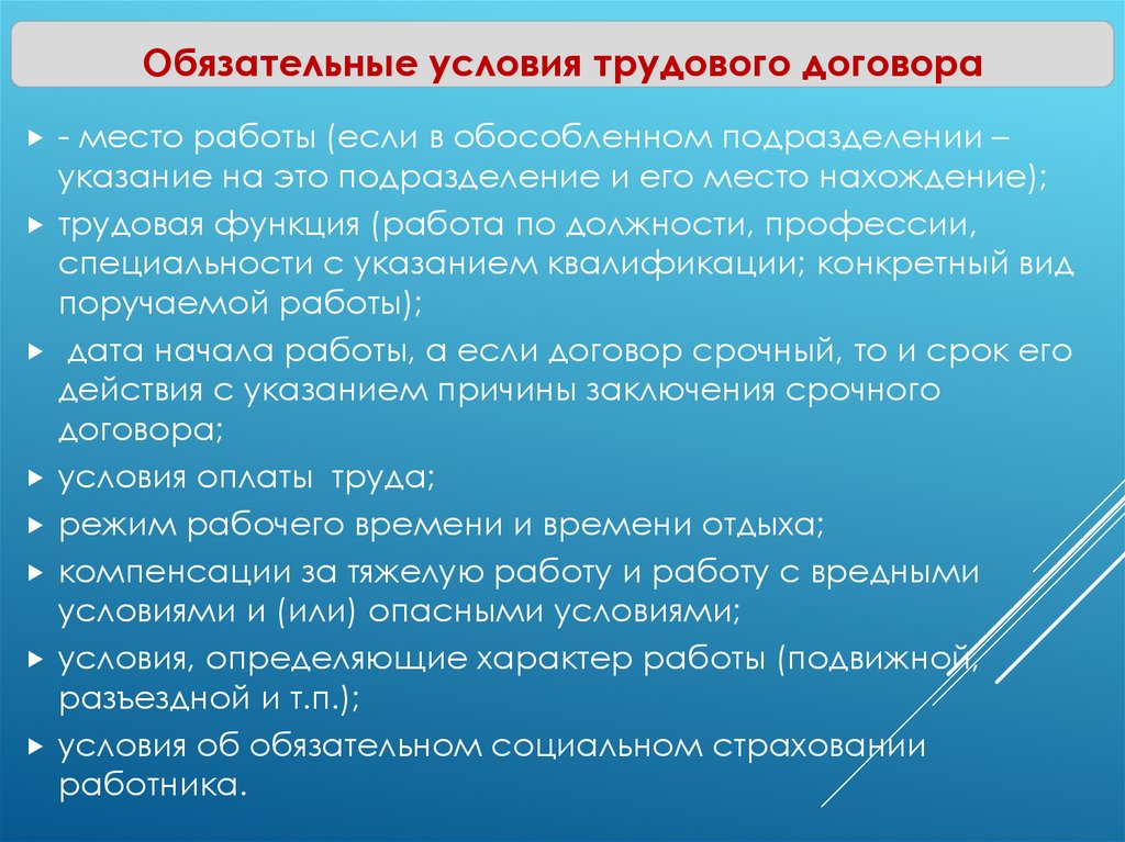 работника или работодателя, условий