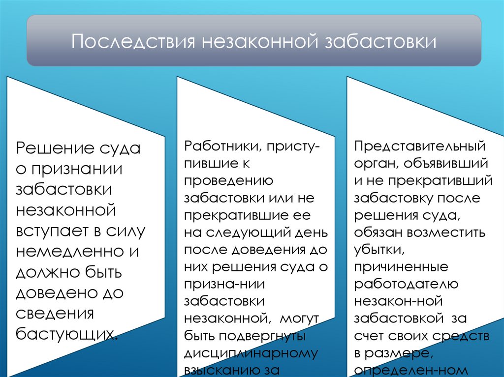 Последствия незаконной забастовкиРешение суда