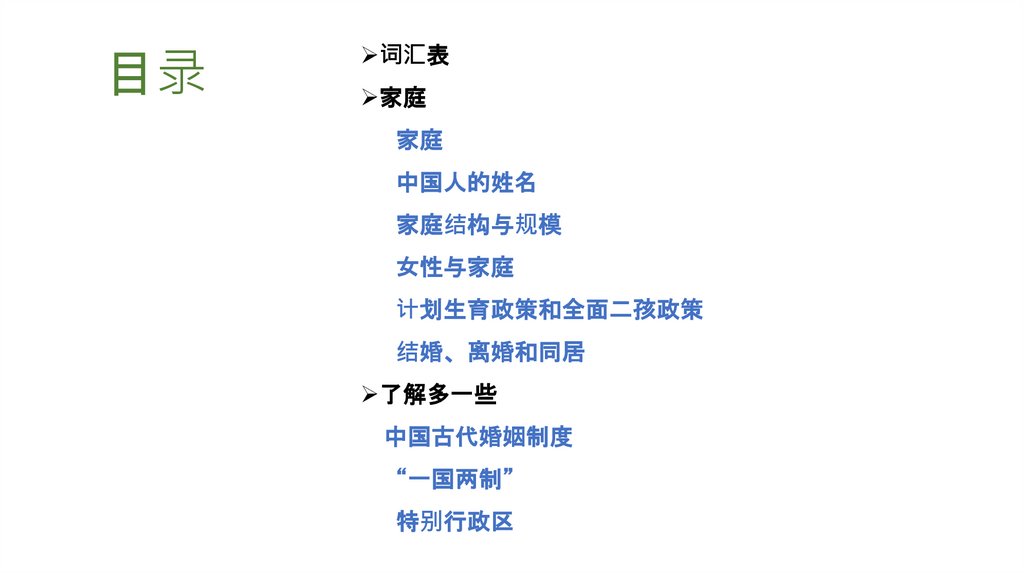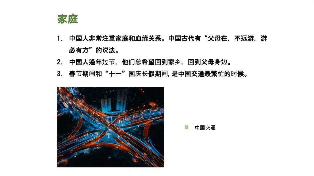 家庭1. 中国人非常注重家庭和血缘关系。中国古代有“父母在 不远游 游