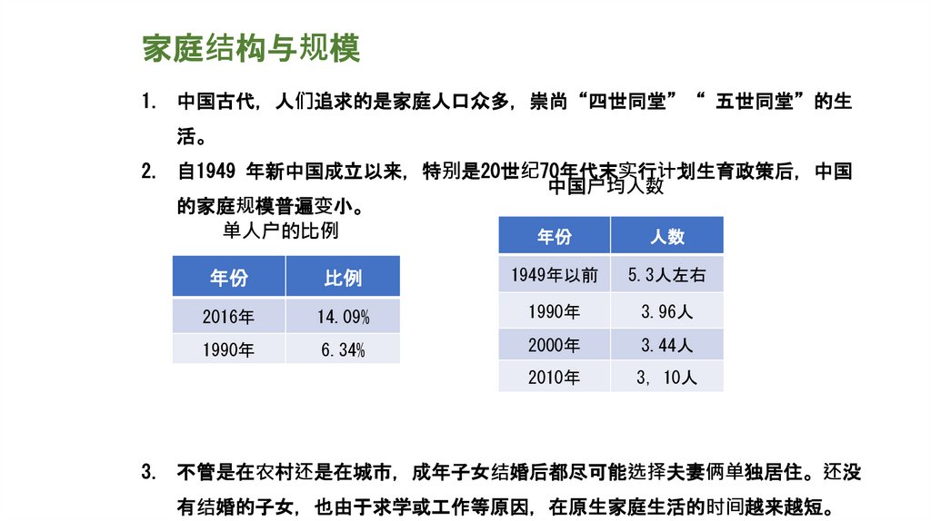 3. 不管是在农村还是在城市 成年子女结婚后都尽可能选择夫妻俩单独居住。还
