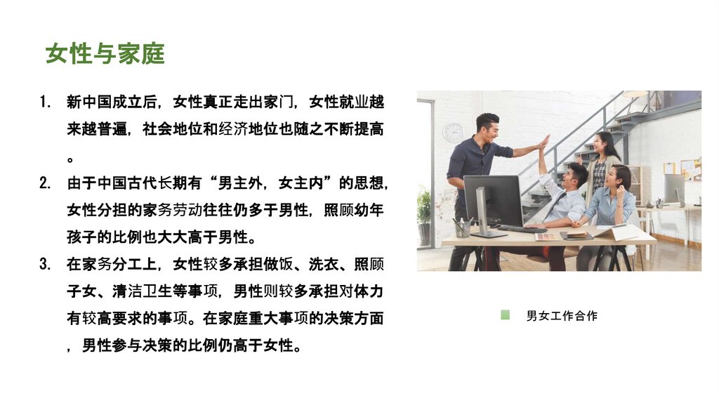 女性与家庭1. 新中国成立后 女性真正走出家门 女性就业越