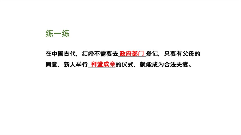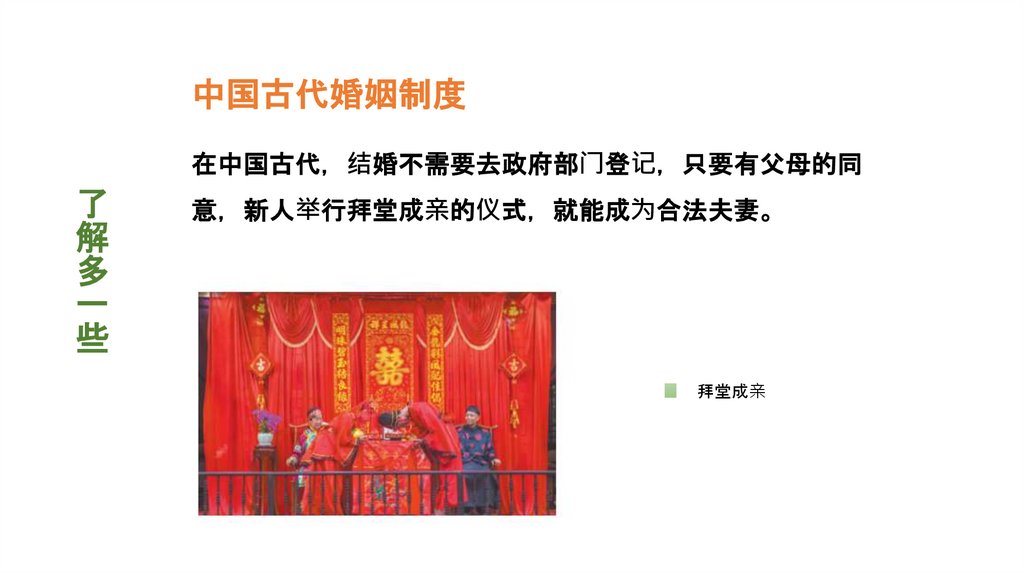中国古代婚姻制度在中国古代 结婚不需要去政府部门登记 只要有父母的同