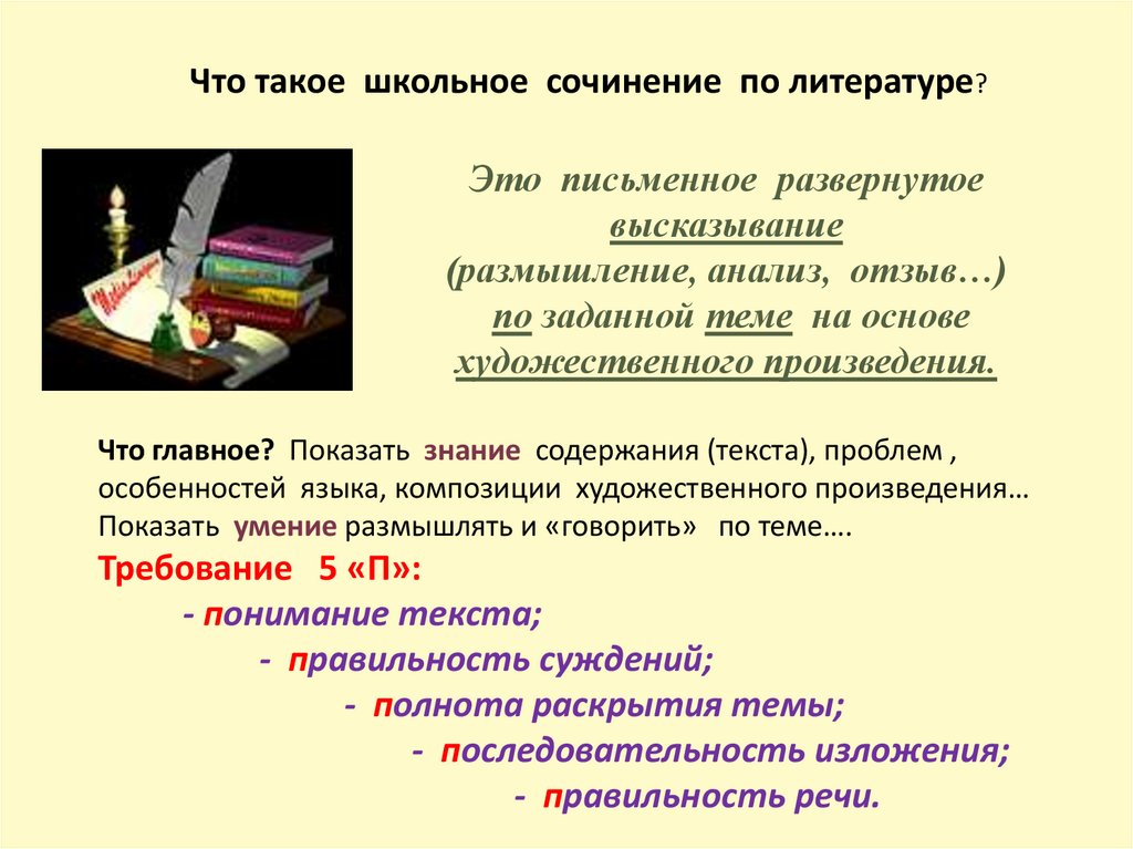 Что такое школьное сочинение по литературе?Это письменное развернутое