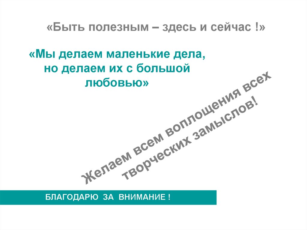 «Быть полезным – здесь и сейчас !»«Мы делаем маленькие дела,