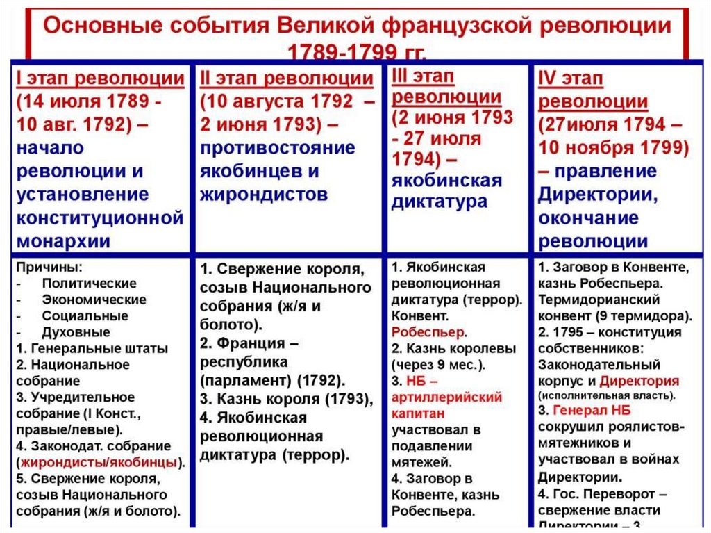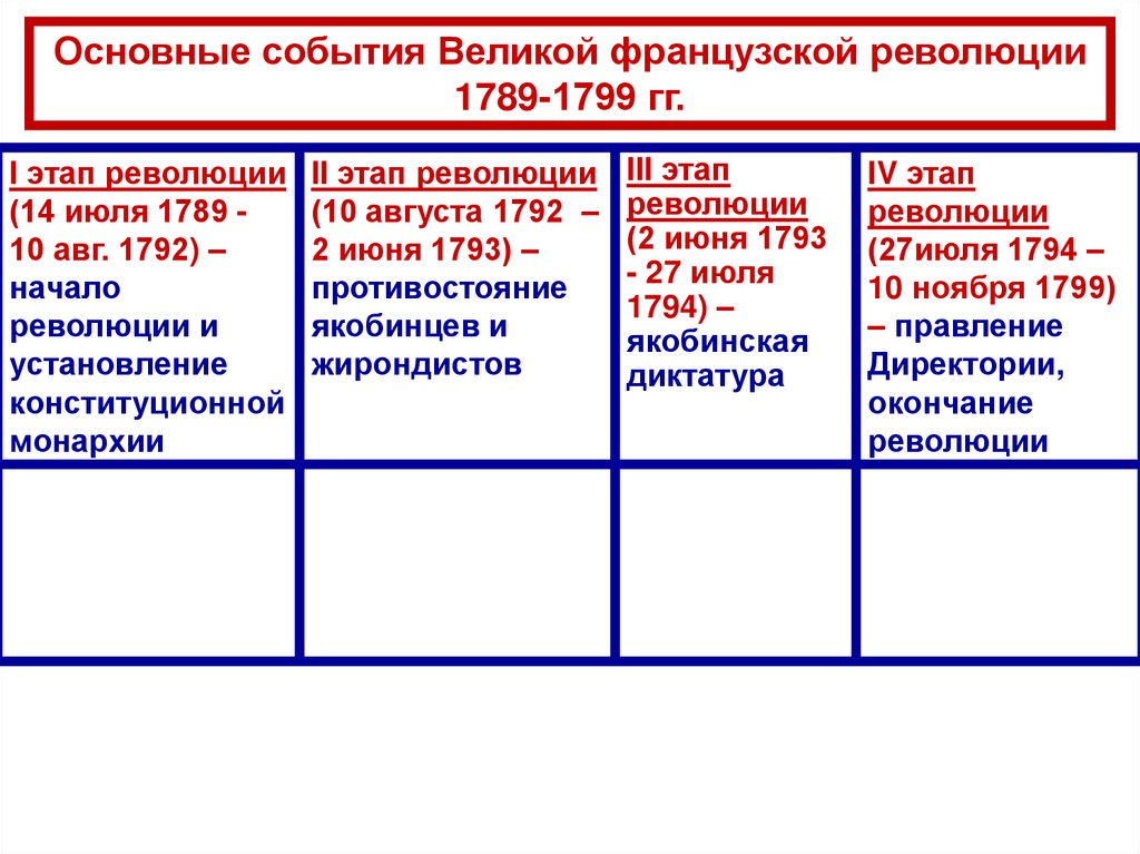 Основные события Великой французской революции1789-1799 гг.