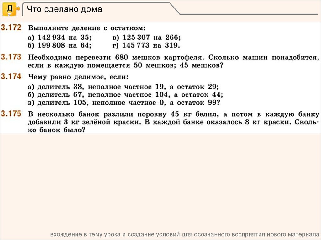 вхождение в тему урока и создание условий для осознанного восприятия нового материала