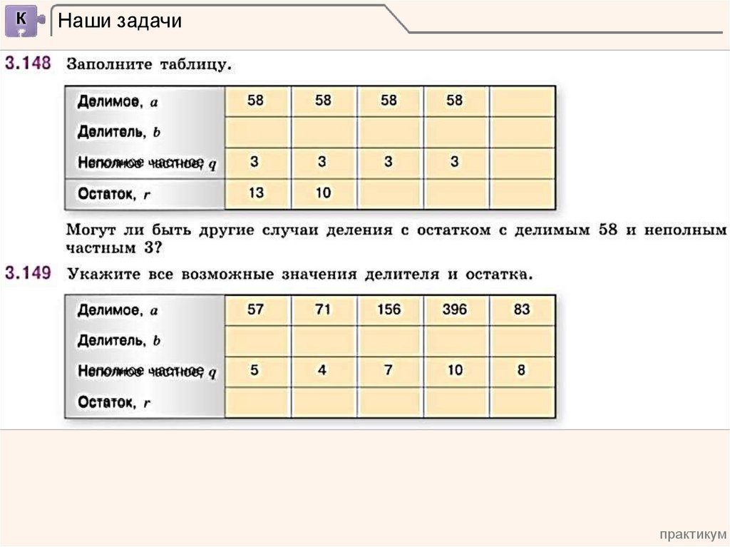 чисел с остатком.