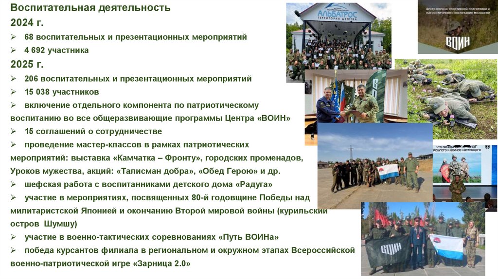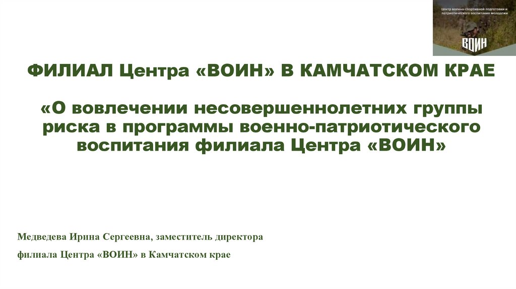 1. ФИЛИАЛ Центра «ВОИН» В КАМЧАТСКОМ КРАЕ «О вовлечении несовершеннолетних группы риска в программы военно-патриотического