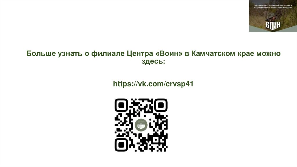 Больше узнать о филиале Центра «Воин» в Камчатском крае можноздесь:
