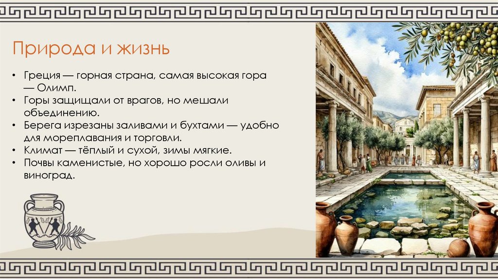 Природа и жизнь• Греция — горная страна, самая высокая гора