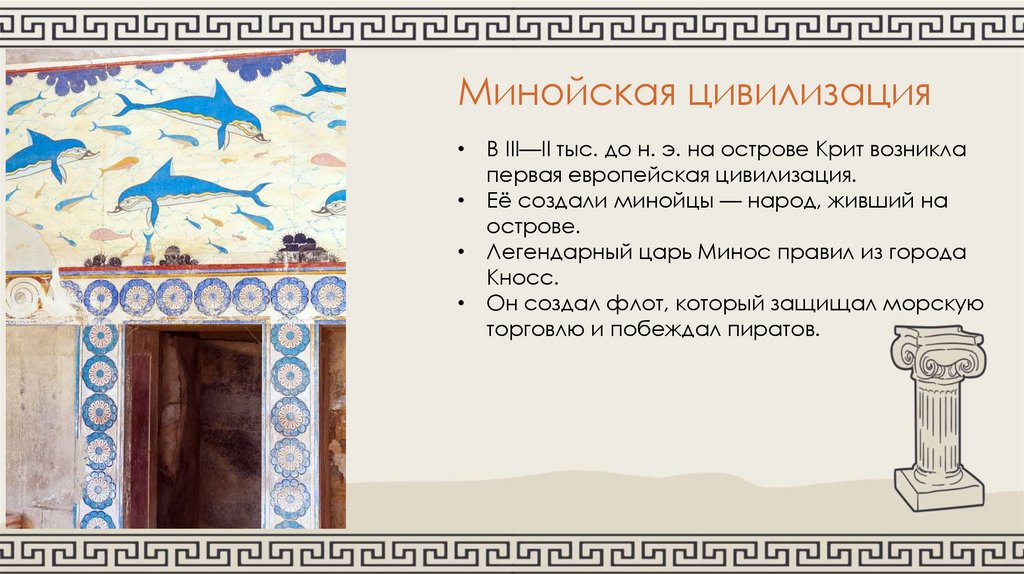 Минойская цивилизация• В III—II тыс. до н. э. на острове Крит возникла