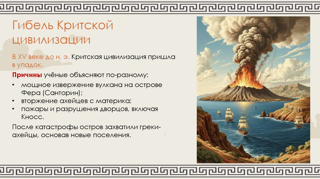 После катастрофы остров захватили грекиахейцы, основав новые поселения.