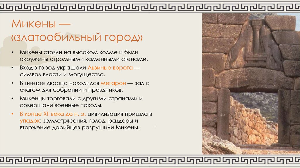 Микенская цивилизацияВ центре каждого города стоял дворец царя —
