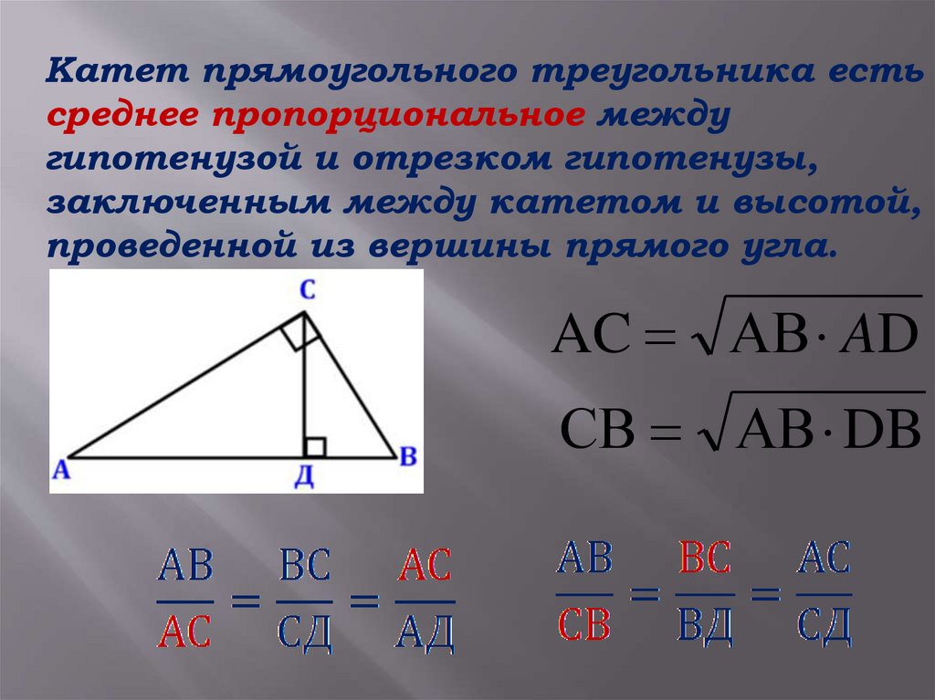 Катет прямоугольного треугольника естьсреднее пропорциональное между