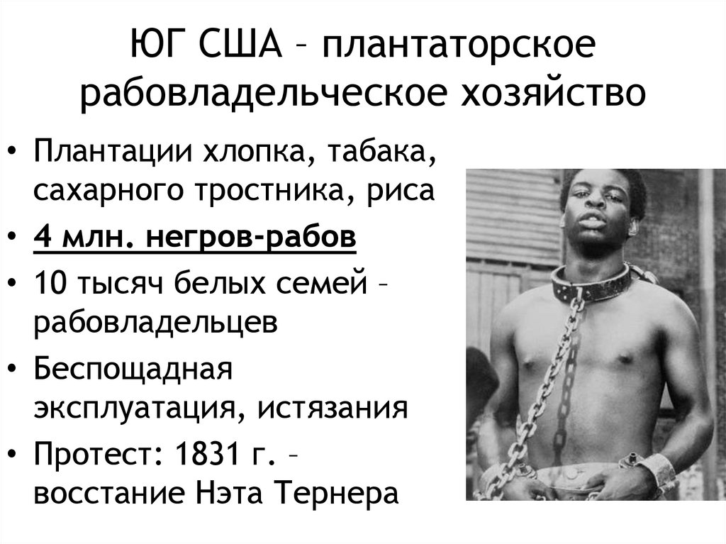 ЮГ США – плантаторскоерабовладельческое хозяйство
