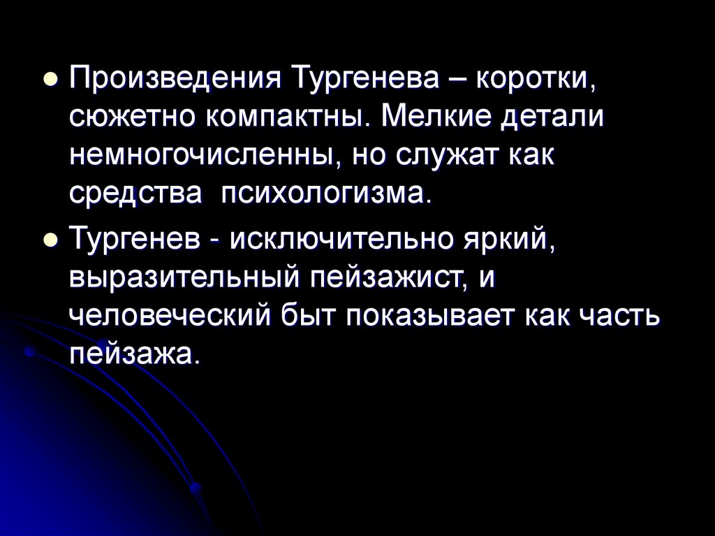 Произведения Тургенева – коротки,сюжетно компактны. Мелкие детали