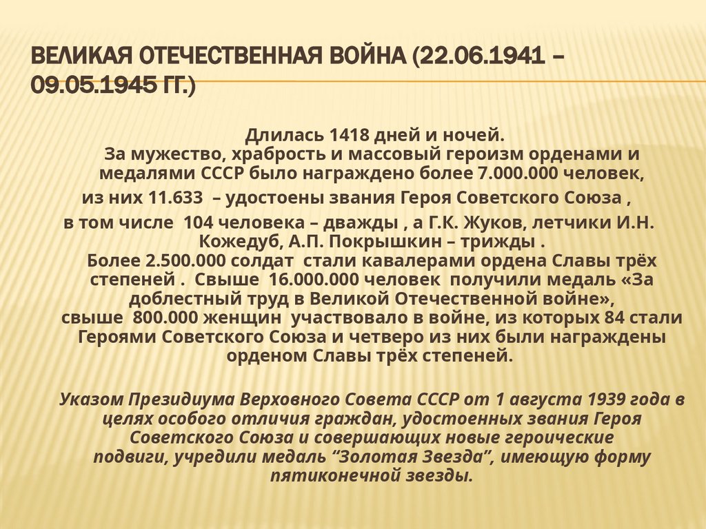ВЕЛИКАЯ ОТЕЧЕСТВЕННАЯ ВОЙНА (22.06.1941 –09.05.1945 ГГ.)