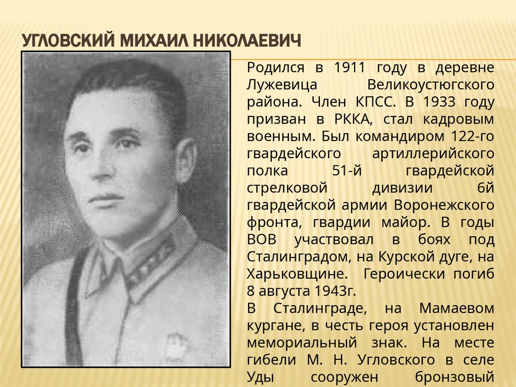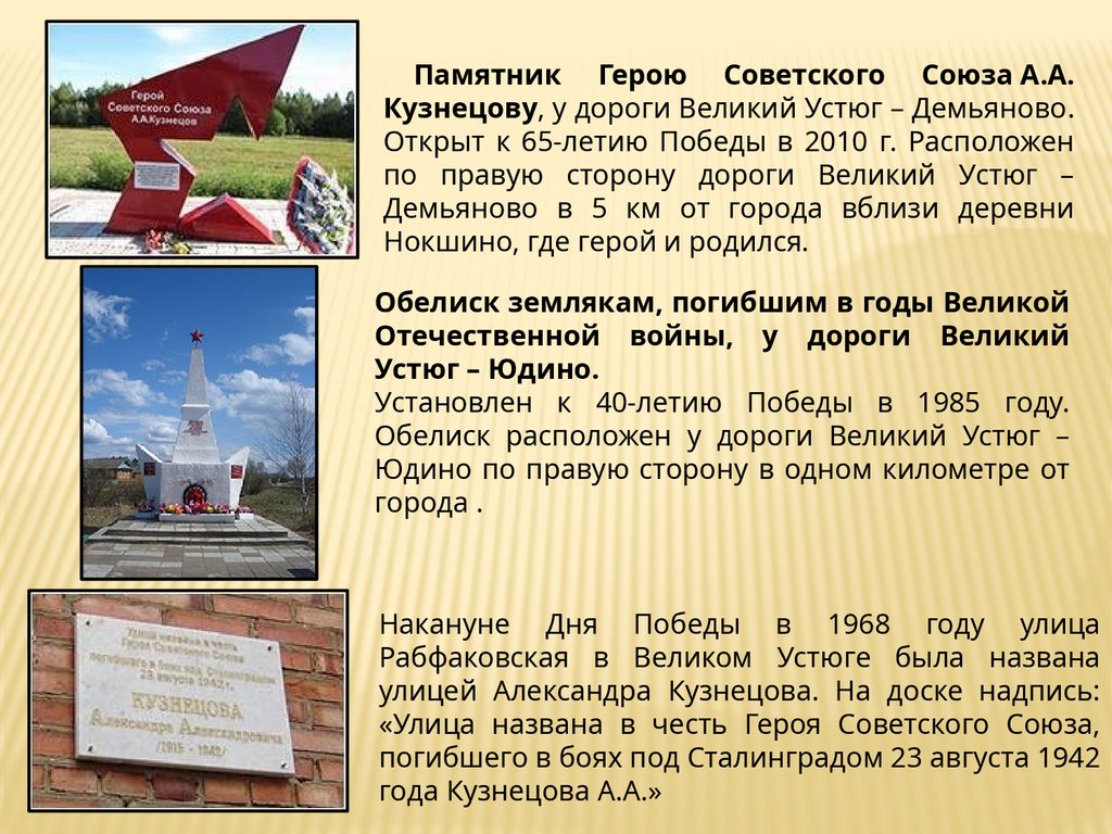Мемориальная доска в г. ВеликийУстюг «Улица названа в честь Героя