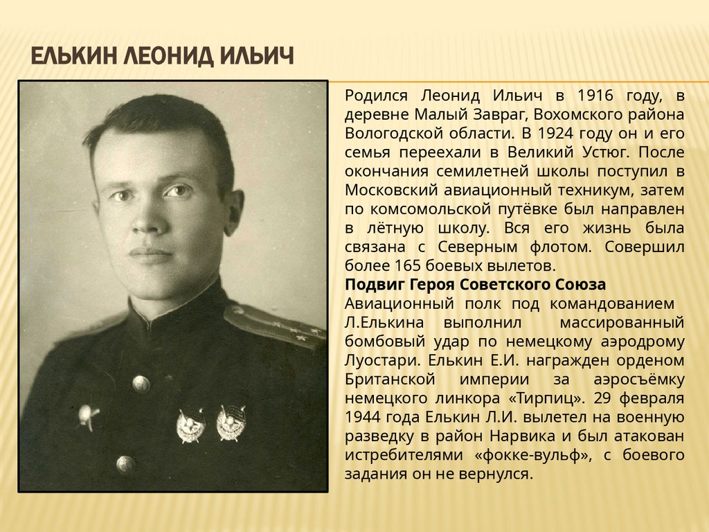 ЕЛЬКИН ЛЕОНИД ИЛЬИЧРодился Леонид Ильич в 1916 году, в