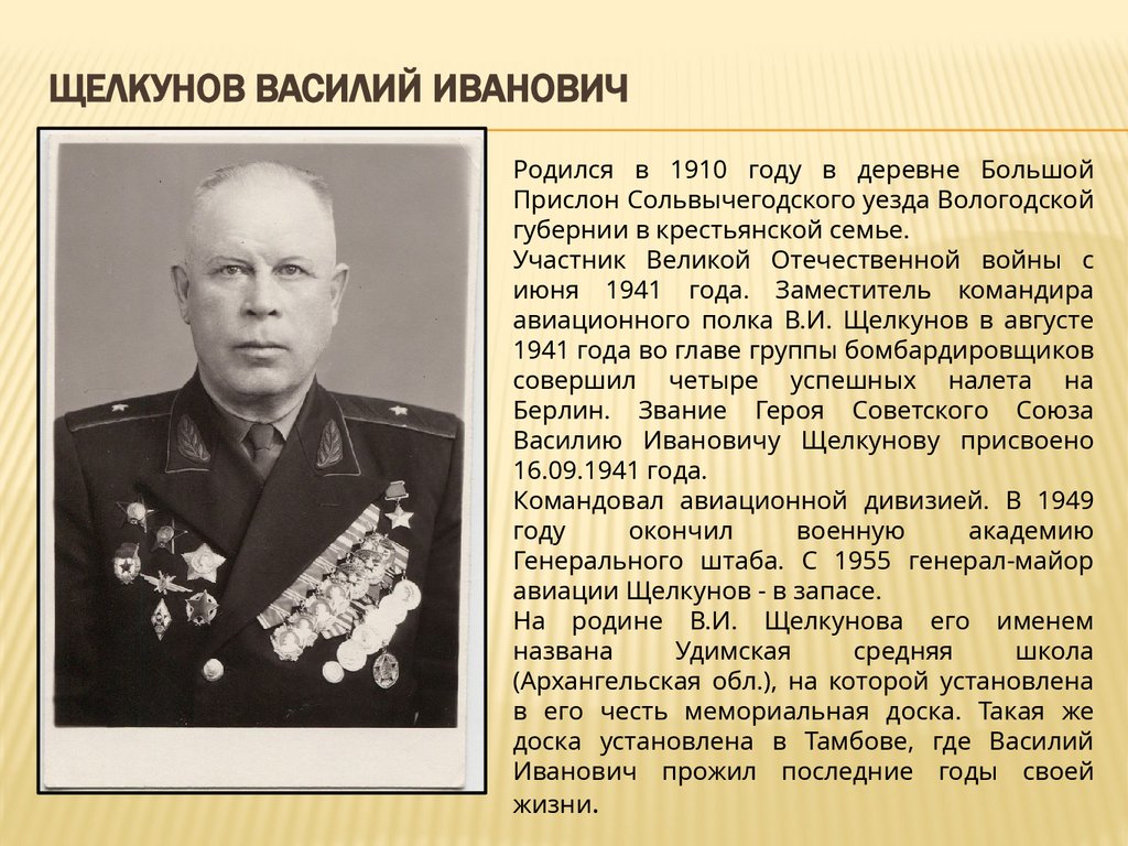 ЩЕЛКУНОВ BАСИЛИЙ ИВАНОВИЧРодился в 1910 году в деревне Большой