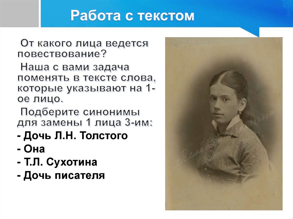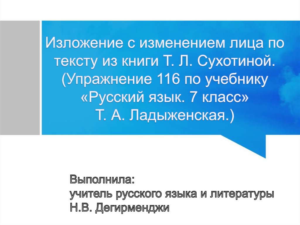 Презентация по русскому языку _Изложение с изменением лица по тексту из книги Т. Л. Сухотиной. (Упражнение 116 по учебнику «Русский язык. 7 кла