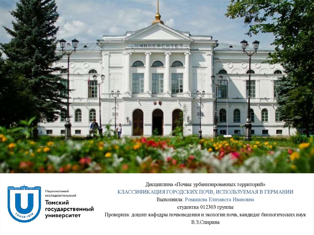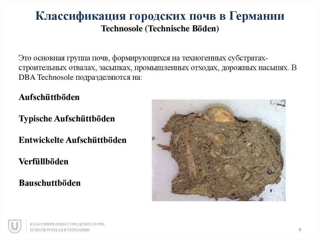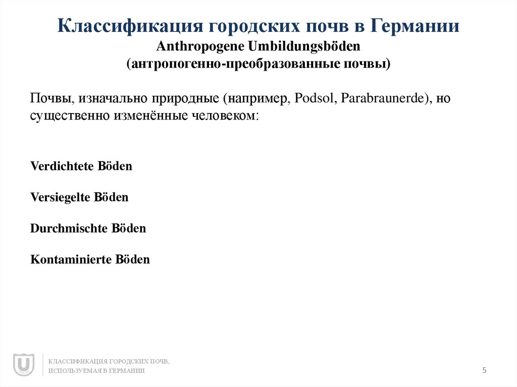 Дисциплина «Почвы урбанизированных территорий»КЛАССИФИКАЦИЯ ГОРОДСКИХ ПОЧВ, ИСПОЛЬЗУЕМАЯ В ГЕРМАНИИ