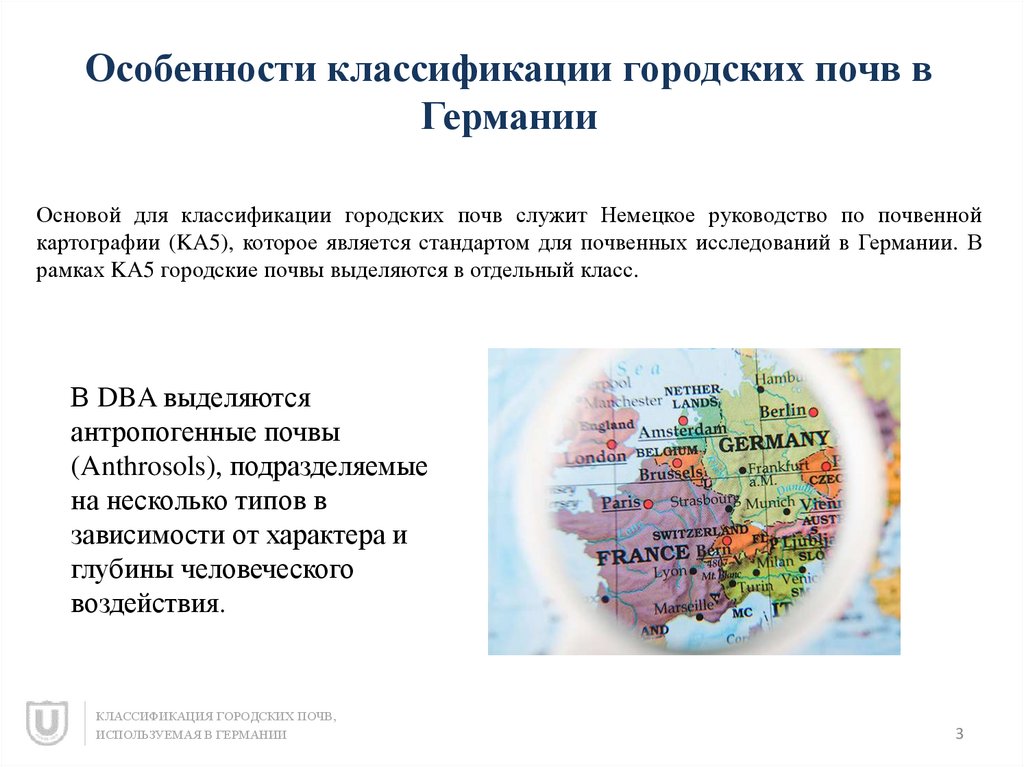 Основой для классификации городских почв служит Немецкое руководство по почвенной